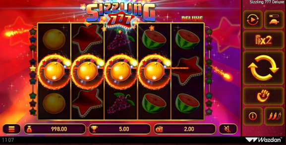 The Sizzling 777 Deluxe slot by Wazdan features 5 reels, 20 paylines, and accepts bets ranging from £0.20 to £2.00.