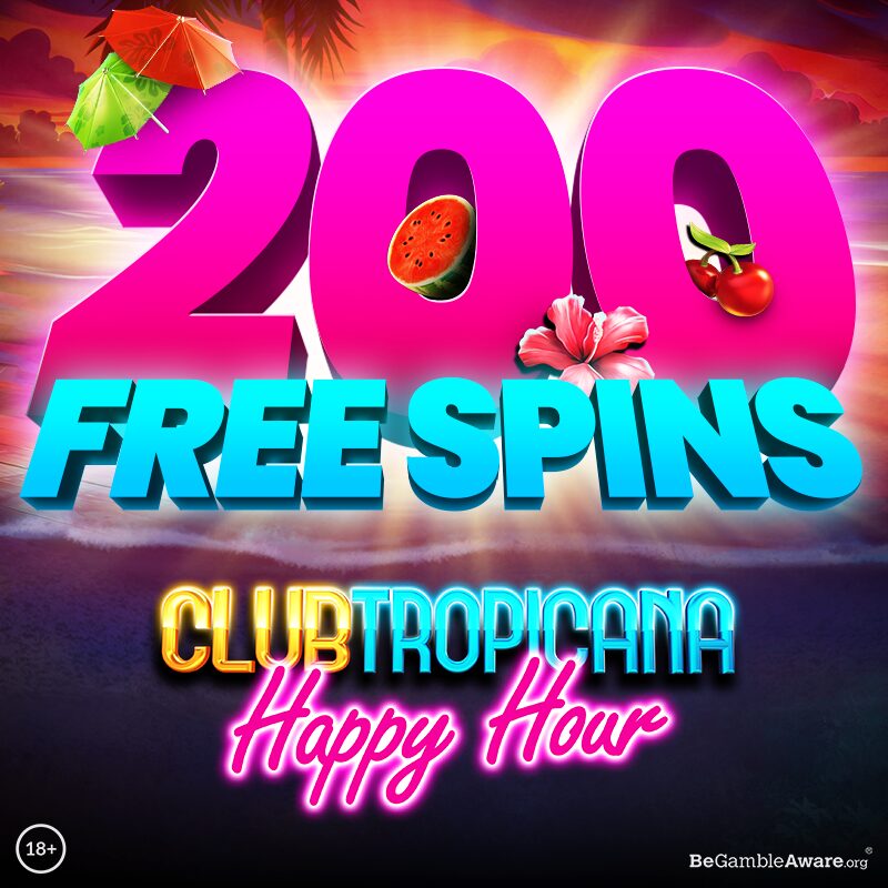 Players can qualify for this promotion twice during the promotion period, for a maximum of 200 Free Spins valid on Club Tropicana – Happy Hour.