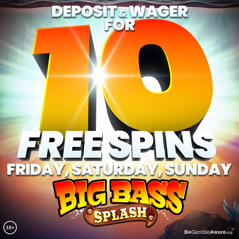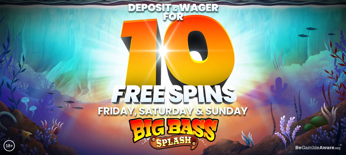 To claim opt in, deposit £60 and wager it on any online slots for 30 FREE SPINS on Big Bass Splash, credited across the weekend.