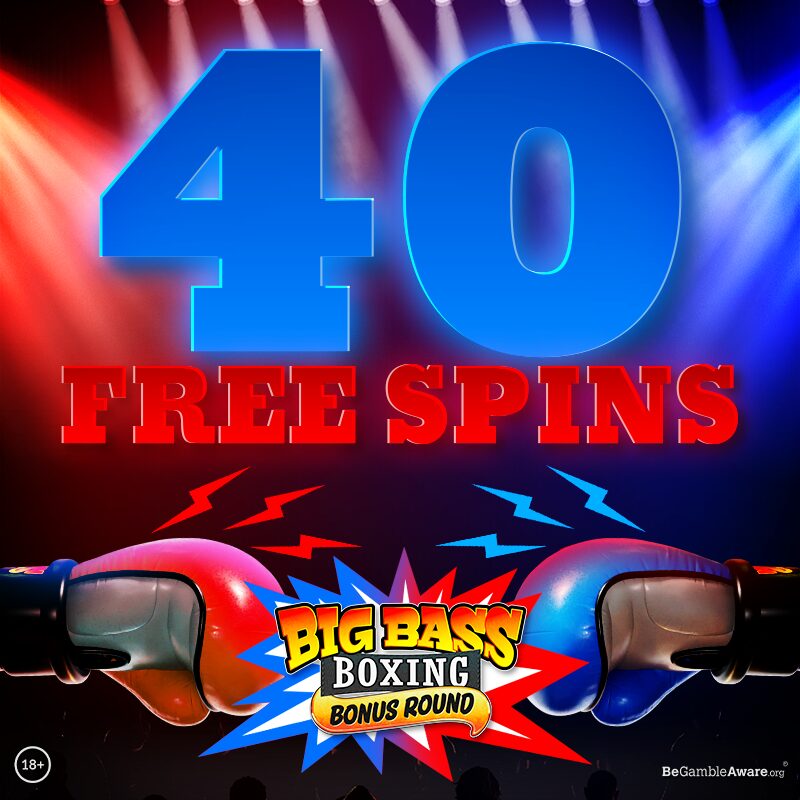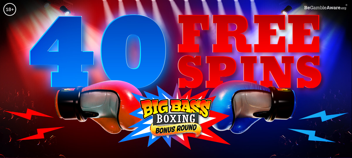 Simply opt in, deposit £40 and wager it on any online slots for 20 FREE SPINS. Plus, you can redeem this offer twice during the promotion period, earning a total of 40 FREE SPINS on Big Bass Boxing Bonus Round, all wager-free.