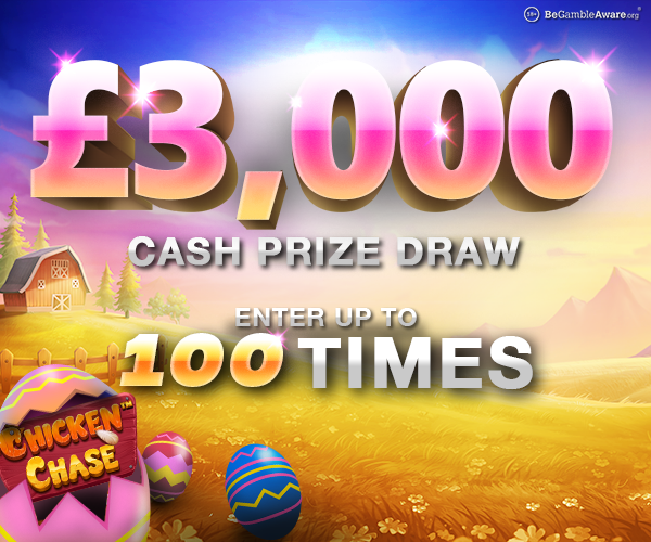 To qualify for one entry, simply opt in, deposit £10 and wager it on any online slots. Enhance your chances of winning by entering the prize draw up to 100 times throughout the promotion. Plus, players who earn one entry or more will receive 10 FREE SPINS on Chicken Chase.