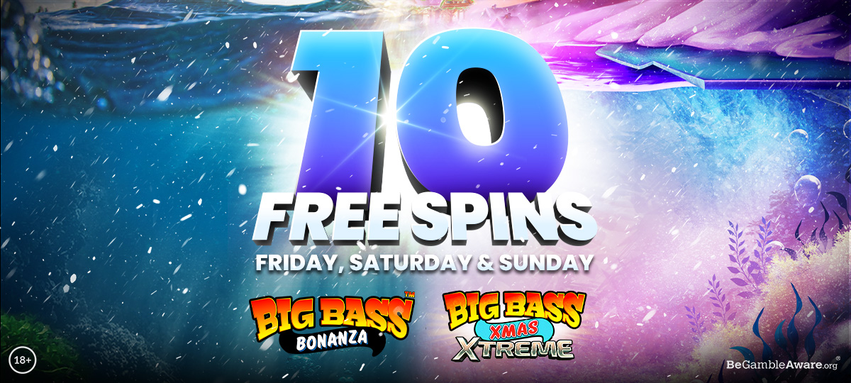Reel in festive fun with 30 Free Spins to play across Christmas Big Bass Bonanza and Big Bass Xmas Xtreme. Simply log in and launch either game to start using your Free Spins.