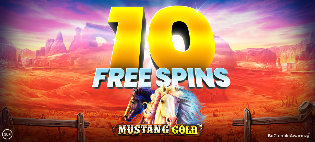 Players will each receive a maximum of 10 Free Spins valid on Mustang Gold.